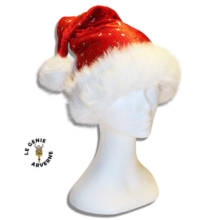 Bonnet de Noël Luxe à Poils Blancs et Motifs Brillants